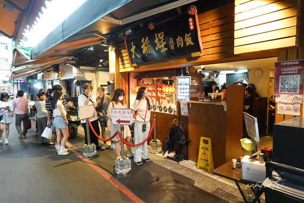 最近在找好吃滷肉飯時,看到不少YT還有電視節目都推薦這家「大稻埕魯肉飯」,平日來用餐還要排隊,他們家的魯肉飯還上過國宴餐桌,感覺觀光客比較多,店面小小的,總共橫跨了三個店面,滷肉飯的肉燥真的肥,加了半熟蛋更吸睛,不過吃起來會更淡一點。