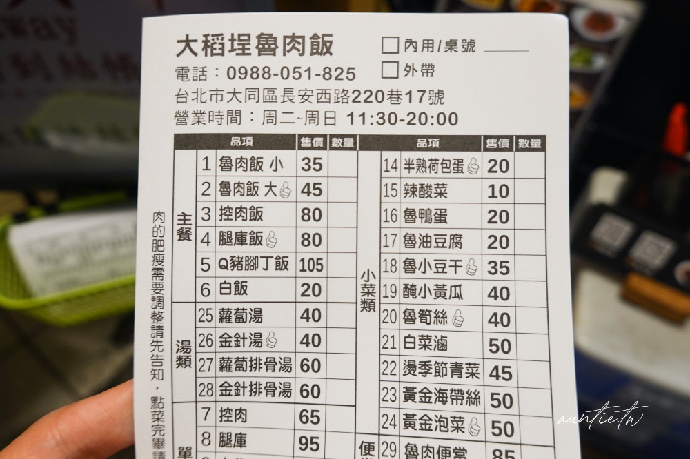 「大稻埕魯肉飯」位於建成市場內,附近還有鵝肉店也很有名。遠遠的就看到大稻埕魯肉飯在排隊,內用外帶不同隊伍,等待帶位後再掃桌上的QR Code點餐。