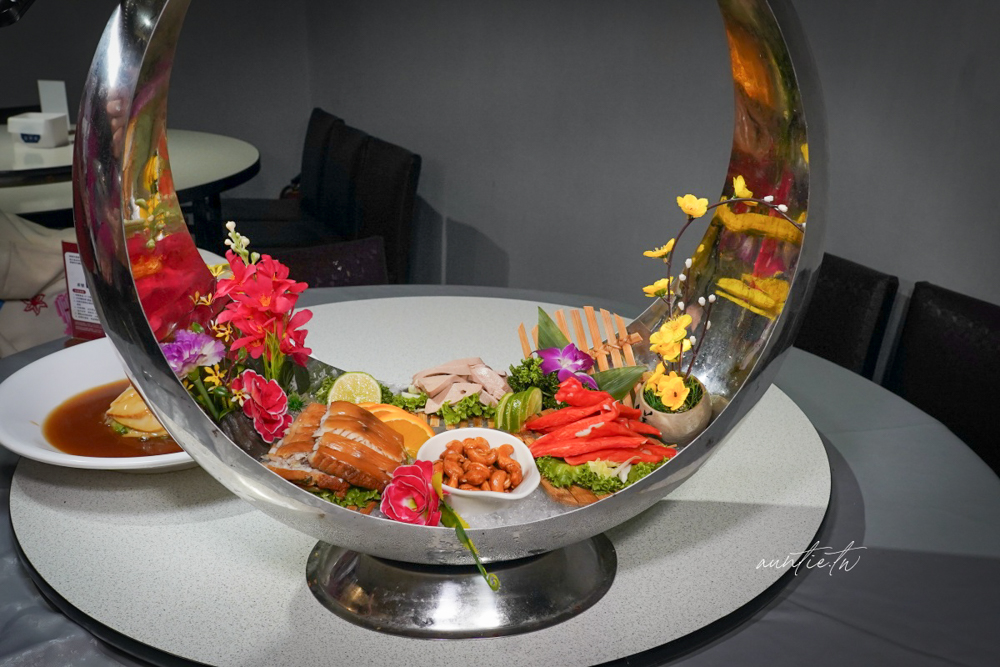 宸軒園的尾牙菜單分為兩個價位:經典雅饌8,800元+10%服務費、尊爵御饗10,000元+10%服務費,這次分享的是尊爵御饗的餐點,包括甜品、水果總共12道菜,餐點擺盤非常大氣又豐富。