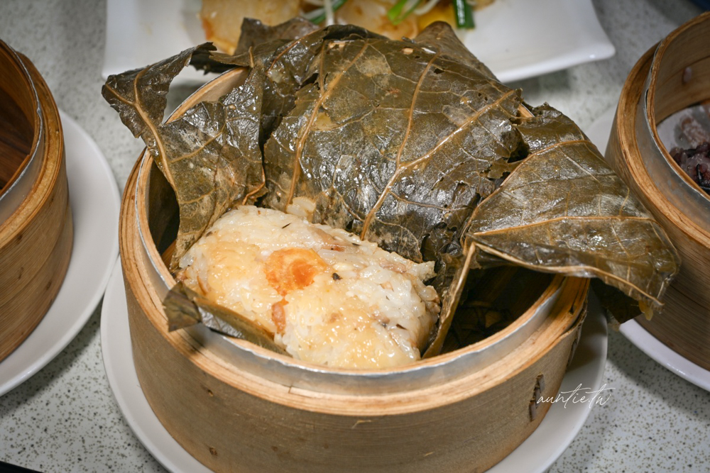糯米充滿了荷葉的香氣,口感軟綿綿的,配料有香菇、鹹蛋黃等,真的是越嚼越好吃。