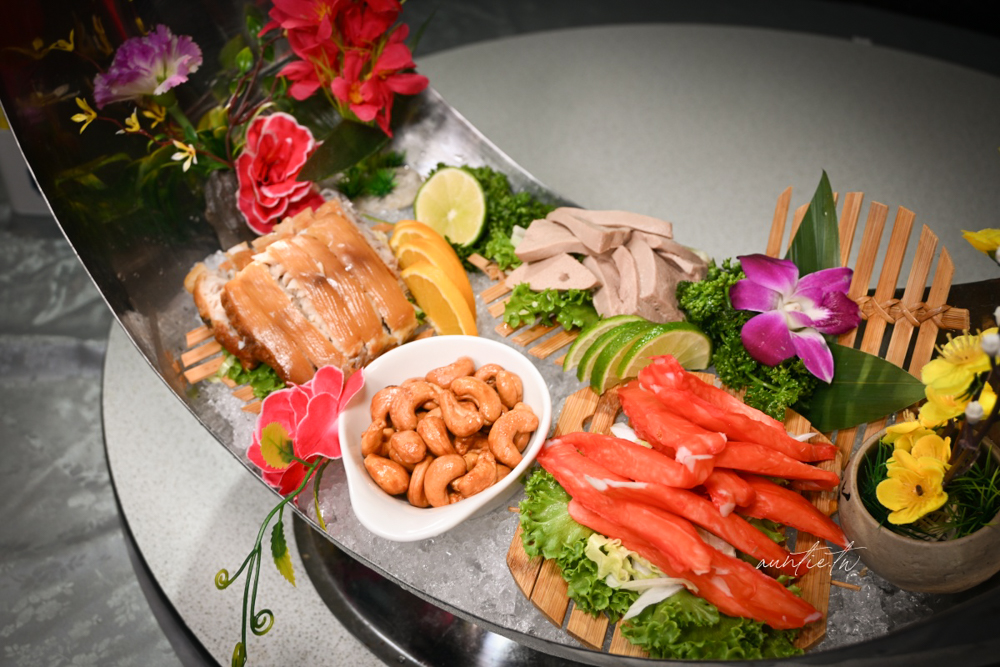 服務人員端上這一大盤前菜拼盤實在是非常霸氣,鯊魚煙、粉肝、蜜汁堅果加上蟹腳的開胃前菜,鯊魚煙煙燻得的入味又不會太重口味,有些害怕鯊魚煙味味道的人也可以接受;粉肝相當軟嫩厚實,吃起來非常過癮;蜜汁堅果就是吃了一顆就停不下來,超開胃小零食;蟹腳的口感非常水嫩,色彩繽紛的擺盤真的會讓人食指大動。