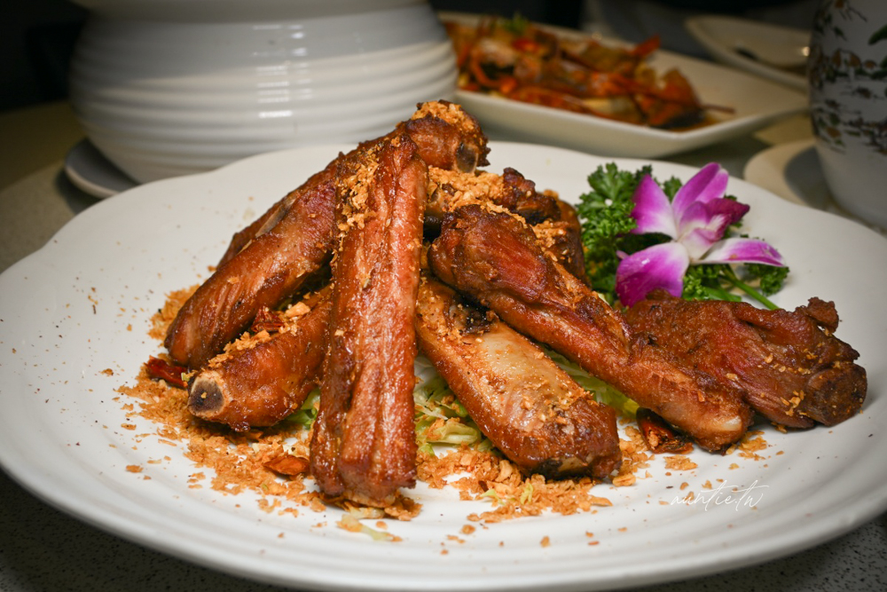 宸軒園的料理很厲害的地方就是善用很多辛香料與醬汁增添風味,加上新鮮的食材,真的每一道都無雷!這道金牌脆皮雞熱熱上桌外酥內嫩光是聞到味道就餓了,肉質細緻柔嫩,就連雞皮部分都十分入味。