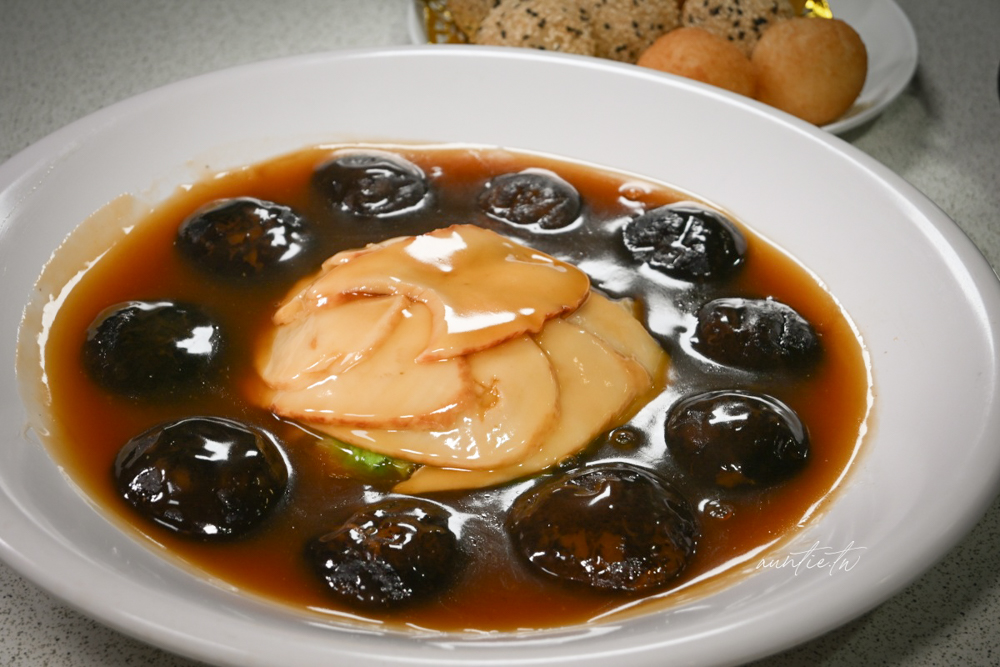 醬濃味美的北菇鮑魚扒時蔬,有著粵菜湯鮮味美的特色,連醬汁都非常美味,鮑魚切成薄片,就算是長輩也能不用費什麼牙口就可以輕易品嚐,大朵肉厚實的香菇吸滿的濃郁湯汁,每一口都爆汁!