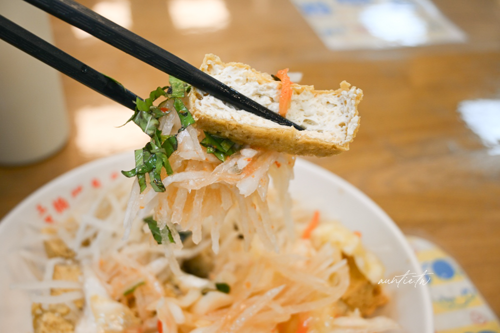 「玉里橋頭臭豆腐」 比較特別的地方除了很臭之外,還多了爽口的蘿蔔絲泡菜,臭豆腐口感還蠻酥脆的,據說是用三種不同油溫炸過,再鋪上滿滿泡菜,整體是偏濕的狀態,不過也因為泡菜很多,吃起來更夠味,他們家的泡菜的酸甜度也比較沒那麼高,整體吃起來是好吃的啦,不過還是花蓮店吃起來味道更棒。