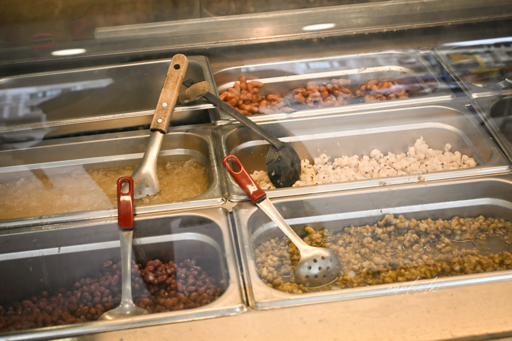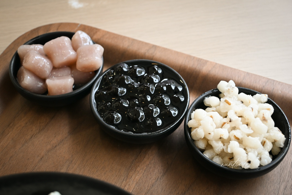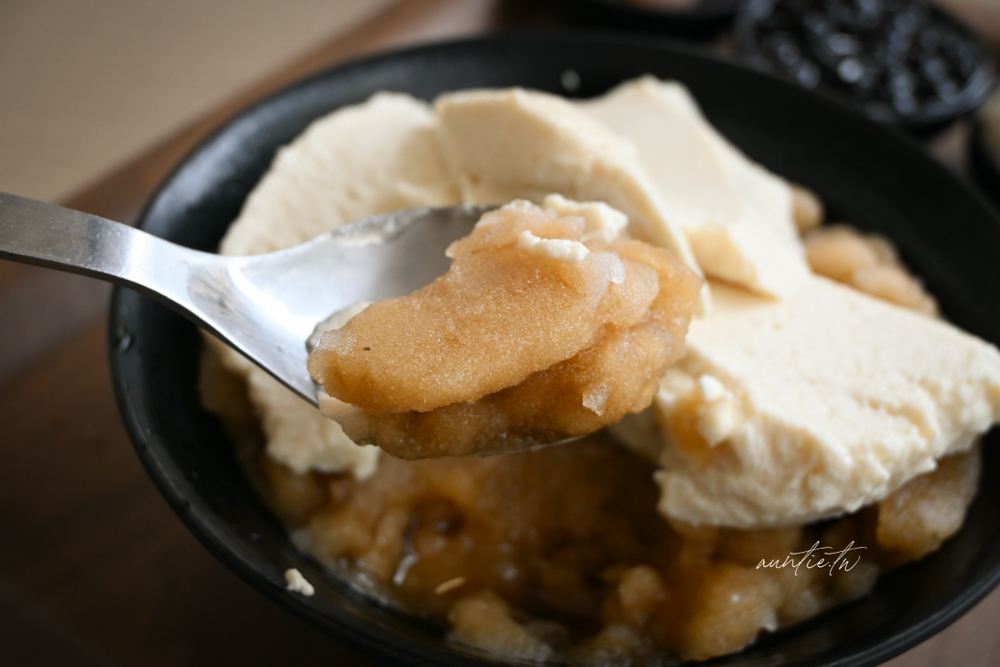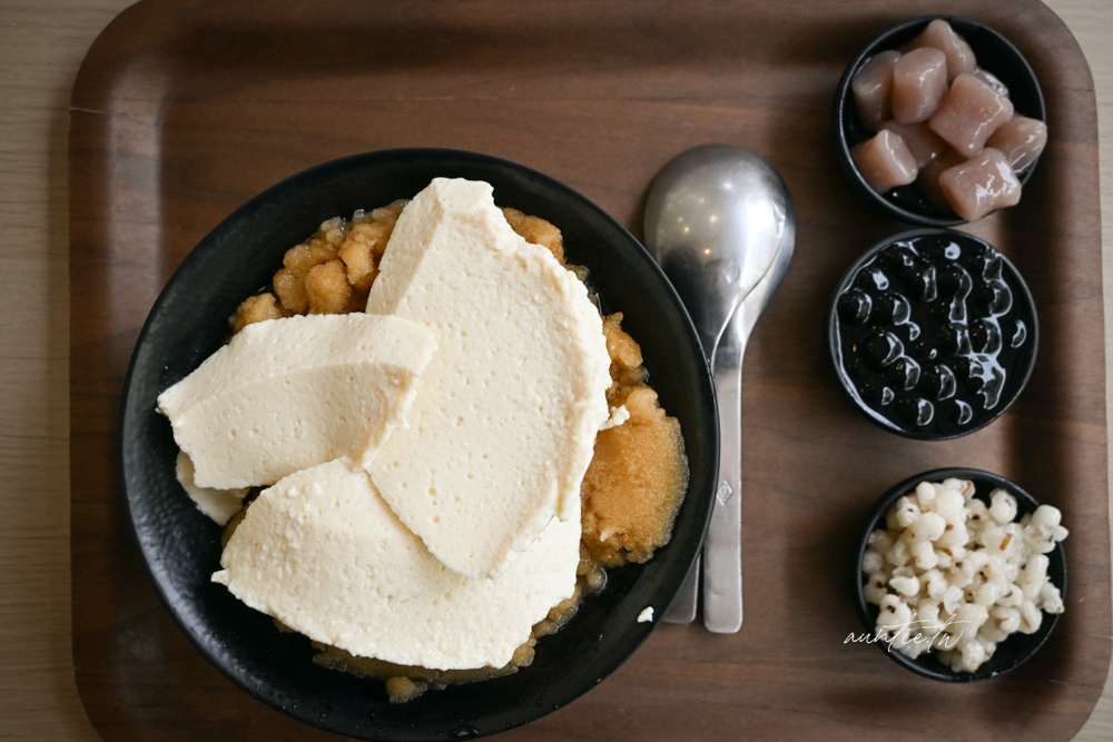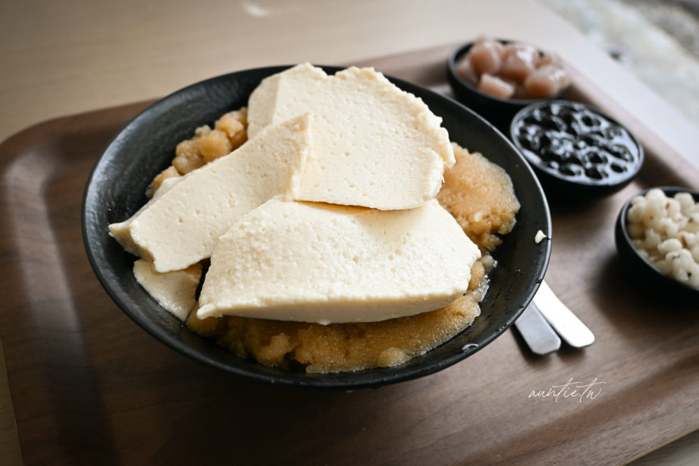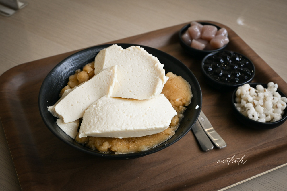 選了粉圓、芋圓、薏仁三種配料,豆花看起來像是豆腐一樣,口感綿密細緻,有淡淡豆香味,個人覺得他們的配料很強,料多實在而且不會太甜,搭配黑糖糖水剛剛好。
