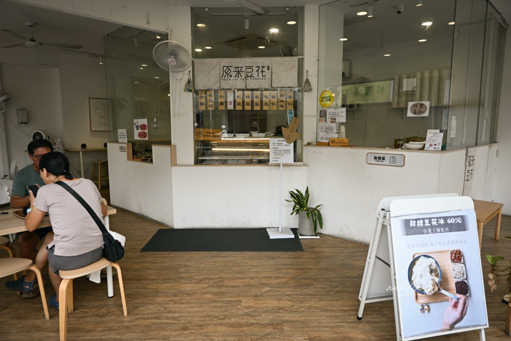 「原來豆花羅東店」是開放式的三角窗店面,帶著點文青風格,環境乾乾淨淨的,不過路旁的水溝味道有點重@@