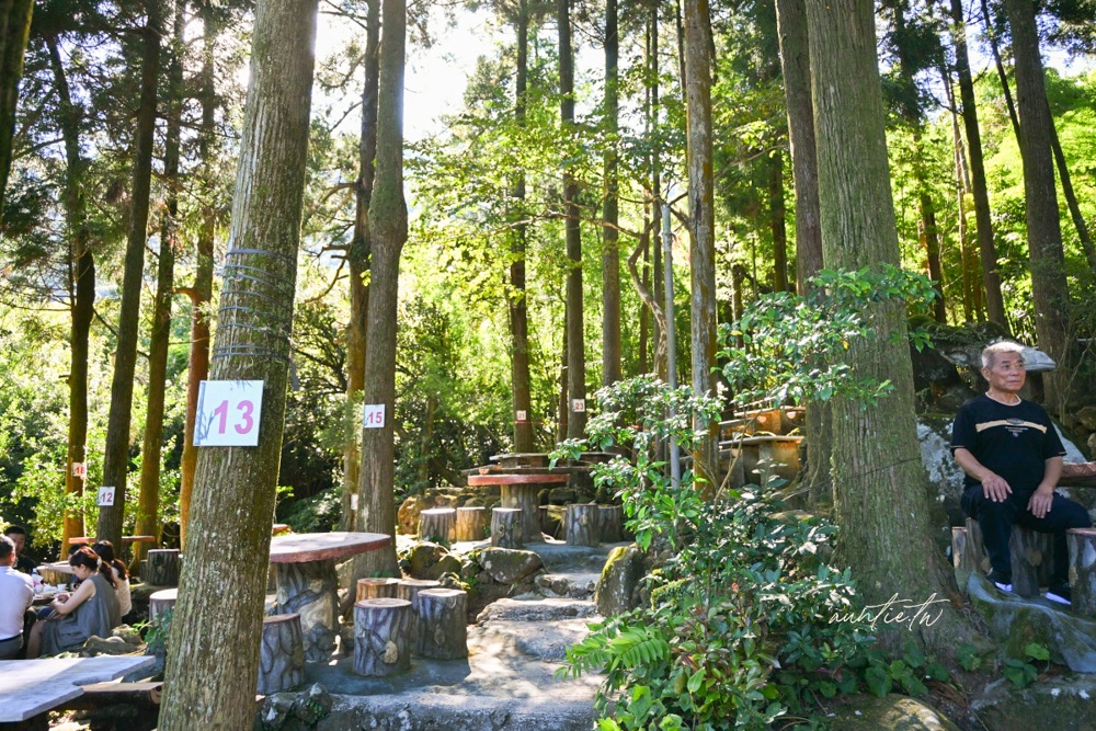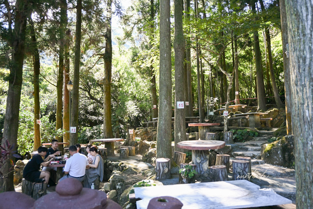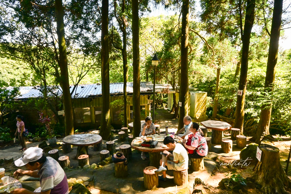 八月的天氣原本以為會熱死人,不過還好,大樹下有風涼涼的,樹蔭擋住了太陽,不會曬也不會熱,桌椅是石桌石椅,有些座位不是平的,有帶老人或小朋友的話要注意一點。
