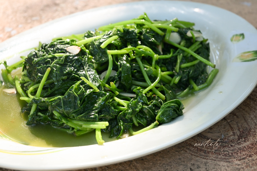蒜頭炒地瓜葉,口感軟嫩,蒜香蠻重的。