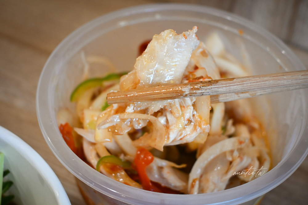 使用去骨雞翅製作,口感還帶有Q彈度,吃起來椒麻香氣更濃郁,還加了生洋蔥絲,吃起來更夠味,買回家當開胃小菜也很棒。