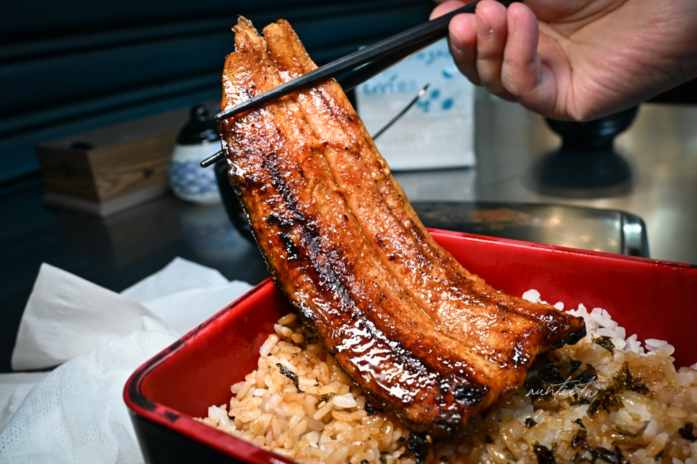 這次又到基隆仁愛市場覓食了!久久沒來發現開了一家日本料理店「鰻胖子」,據說是今年四月才開的,在基隆其他地方好像也有開店,現烤的鰻魚飯很吸睛,另外也有生魚片握壽司,店面小小不過平日午餐生意很不錯,重點是價格很便宜,半尾鰻魚飯價格不到三百元,鮭魚味增湯免費續!