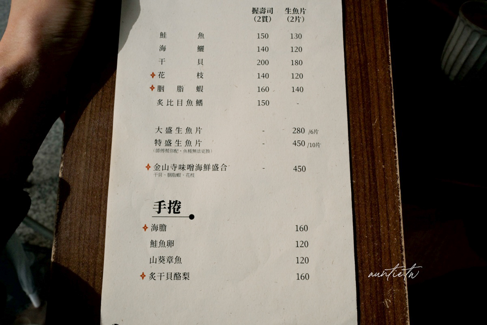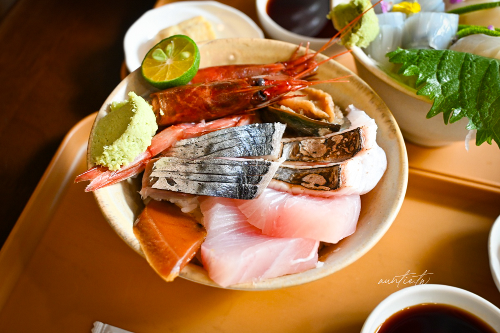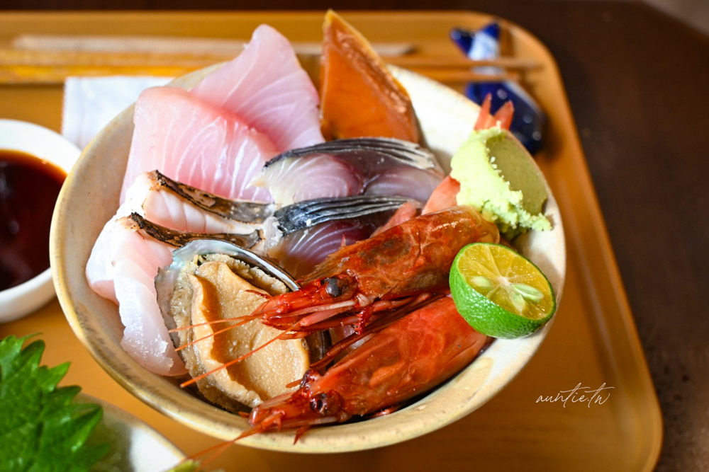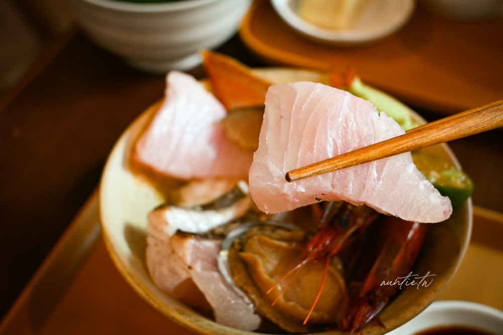使用台灣在地漁獲做成的台灣丼,上桌時工作人員有介紹當天使用的生魚片有什麼不過聽過就忘了😂。生魚片會隨季節漁獲更換,這次吃的有胭脂蝦、鮑魚、烏魚子,還有幾片不確定魚種的生魚片,不過整體來說都是好吃的,味道鮮美外,醋飯搭配得非常好,酸度甜度熱度以及口感都無可挑剔!