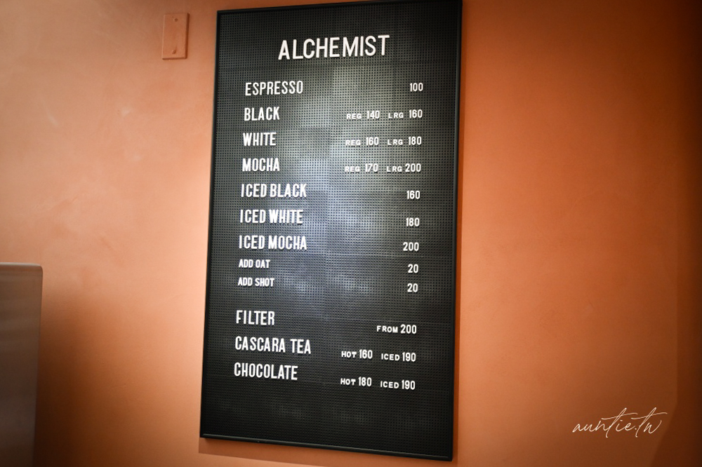 「Alchemist 台北迪化」就位於迪化街旁,靠近永樂市場的巷弄內,不知道是不是呼應迪化街附近建築的色系,店內的裝潢也是走橘紅系磚牆色,入內後會先安排座位再點餐,客滿時可以候位,這次大約下午兩點多去,店內是客滿狀態,先到附近吃東西回來就有位子了,假日可以能要候位比較久一些。
