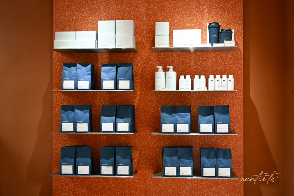 店內空間明亮舒適,有大片落地窗,看起來很簡約又大器,有另外販售咖啡包以及沐浴乳洗手乳,廁所的洗手乳就是他們家的自有商品,味道很好聞耶,也可以當沐浴乳使用,還帶有磨砂去角質的作用。