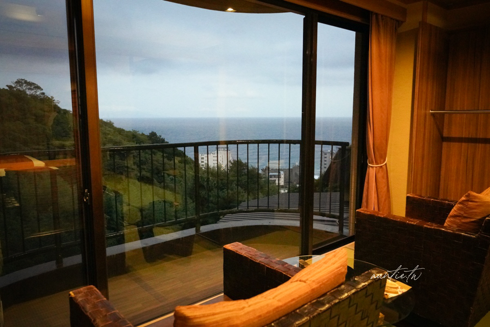 這次去伊豆,最想念的就是東伊豆的無敵海景,這次到東伊豆溫泉之旅其中一天入住了「東伊豆熱川王子大飯店 (Atagawa Prince Hotel)」頂樓有面海的露天風呂還有足湯,房間也是可以看到海景的,可惜第一天到東伊豆的時候天氣不是很好,不然風景一定更美麗!