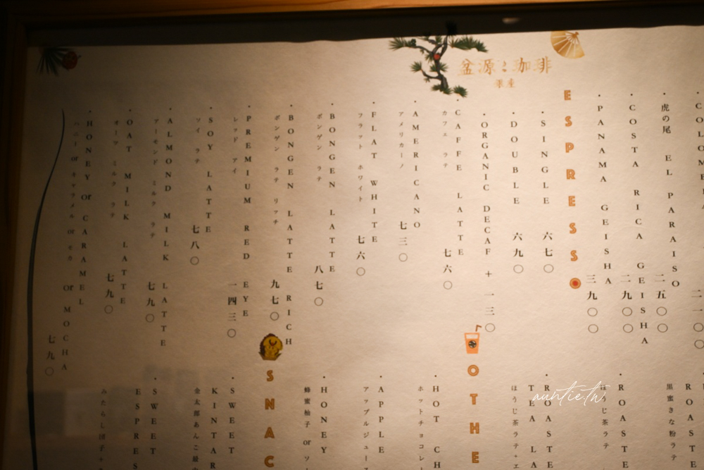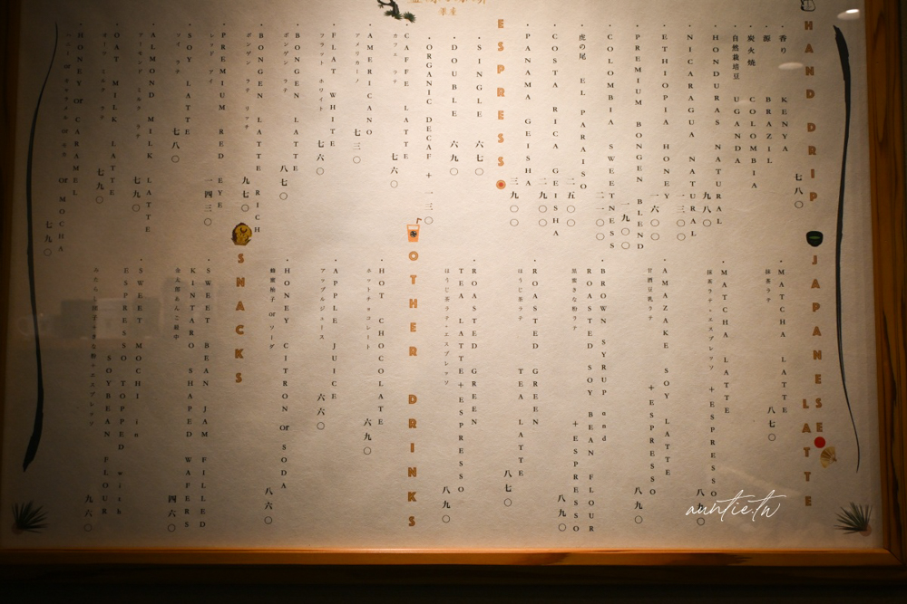 菜單在牆上跟櫃台都有,櫃檯上還有販售咖啡豆、濾掛咖啡等,咖啡大致上分為四種,點了咖啡後會問要點哪一種豆類,這次喝的都是自然栽培豆 medium Roast。