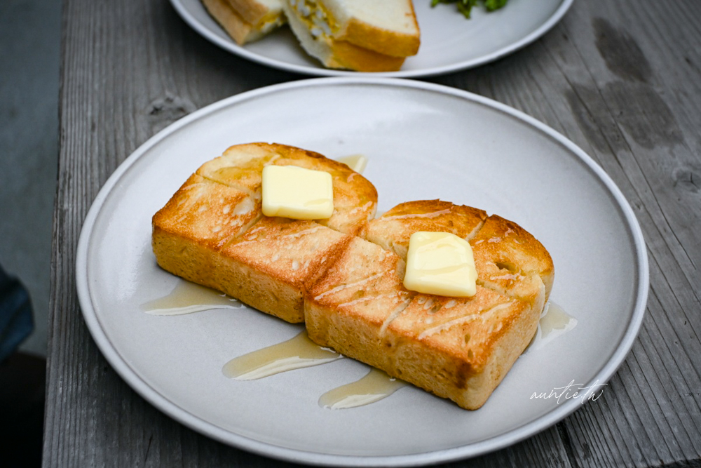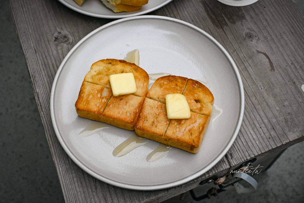 烤過後的吐司加上一小塊奶油搭配,再淋上一點蜂蜜增加香甜滋味,味道就是想像得到的味道,不過熱熱吃真的很好吃。