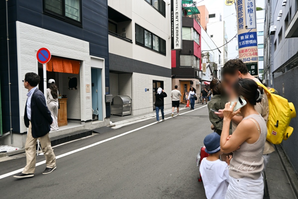從東銀座地鐵出來的話走A7或是3號出口都算蠻近的,步行三分鐘到,這次是先到「イマカツ 銀座店」吃豬排後再去喝抹茶,一靠近路口就有被排隊人潮給嚇到。