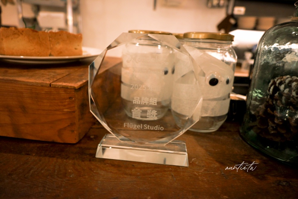 這次在台電大樓站吃到一家好吃到會令人開心的甜點,「Flügel Studio」就連下大雨的天氣生意都還是很好,下午蛋糕剩的不多,看了一下評價常常開門營業半小時就賣得差不多,店裡還有一個看起來很厲害的「當代新銳甜點首獎」獎座,隨便點了個焦糖蛋糕沒想到好吃的不得了,邊吃邊碎碎念:這也太好吃了吧~怎麼那麼好吃!看到別的客人桌上的甜點也超有興趣,只是賣光吃不到有點可惜,下次一定要再來一次。