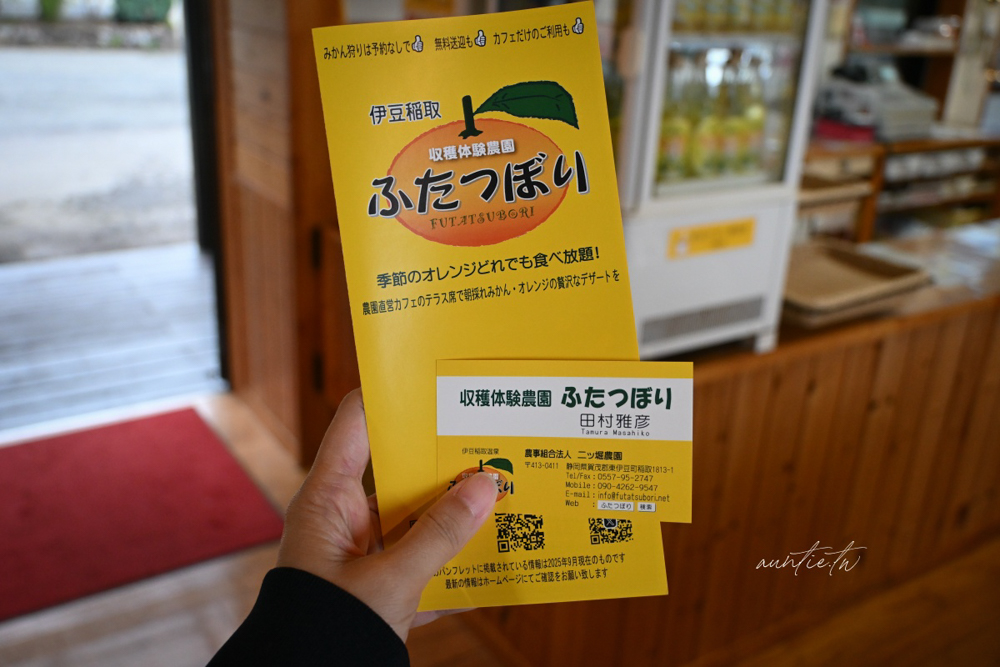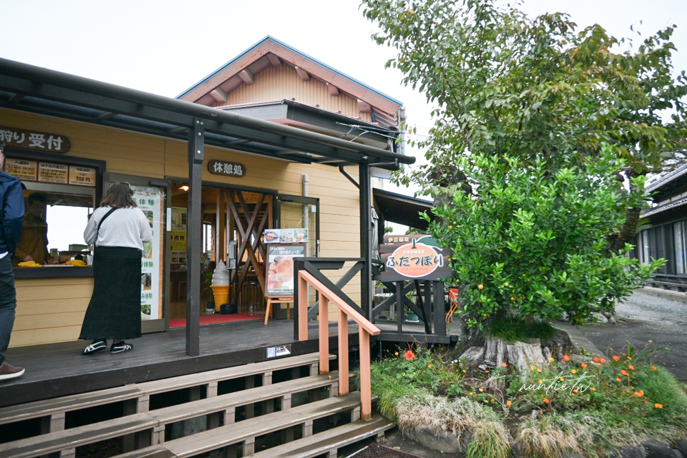 東伊豆稻取溫泉鄉除了有豐富的海鮮美食外,還能在「二堀橘子農場 收穫體驗農園 ふたつぼり」體驗採橘子的樂趣,沒想到在這裡栽種的橘子那麼好吃,從10月到隔年5月,有多達12種橘子品種,不同季節有不同品種的橘子可以採收,農場主人自家栽種,直接帶你到後山橘子園採收橘子,採收下來的橘子直接現榨果汁,從產地直接送到肚子裡;也可以DIY製作成果醬,農場內還有多種橘子產品可以買回家喔!
