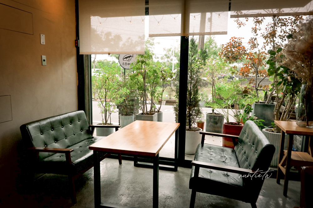 「花室咖啡」店裡店外都整理的很好,乾乾淨淨的,大部分都是木質桌椅,還有一些乾燥花當作擺飾,窗明几淨有大片落地窗,採光很好,感覺起來溫暖舒適。