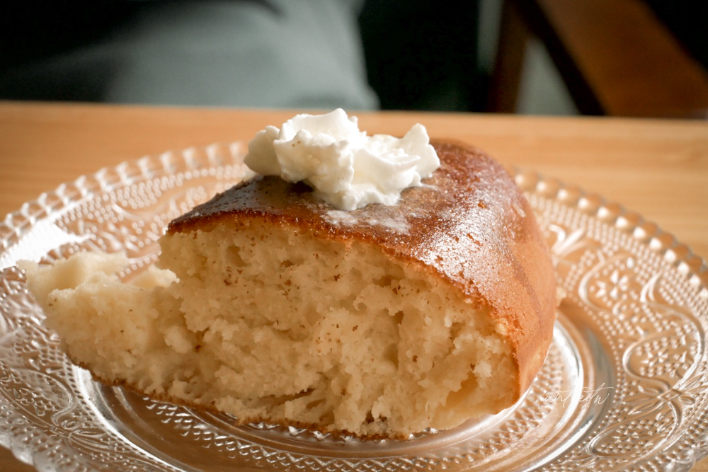 基本的組合就很好吃,現烤的厚鬆餅大約要等二十分鐘才會上桌,搭配鮮奶油、蜂蜜。不得不說,這厚鬆餅的尺寸真的很大,又厚又大塊,之前有吃過類似的鬆餅都沒有這麼厚,大約只有二分之一的厚度而已。先吃原味試試口味,老實說味道真的很原味,沒什麼甜味,就是要搭配蜂蜜跟鮮奶油才好吃,加了層次味道才會跳出來,單吃真的沒什麼味道,口感外酥內軟,熱熱吃最棒!