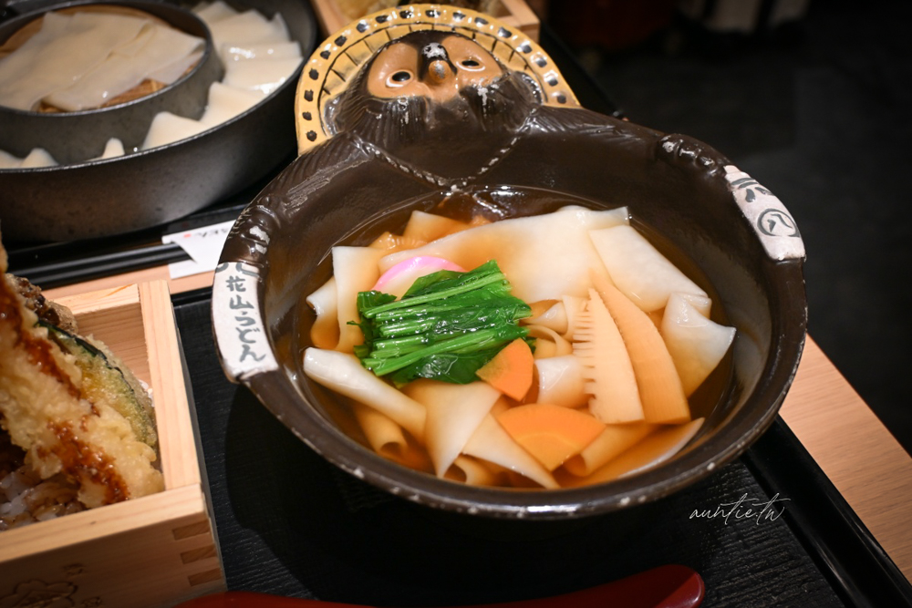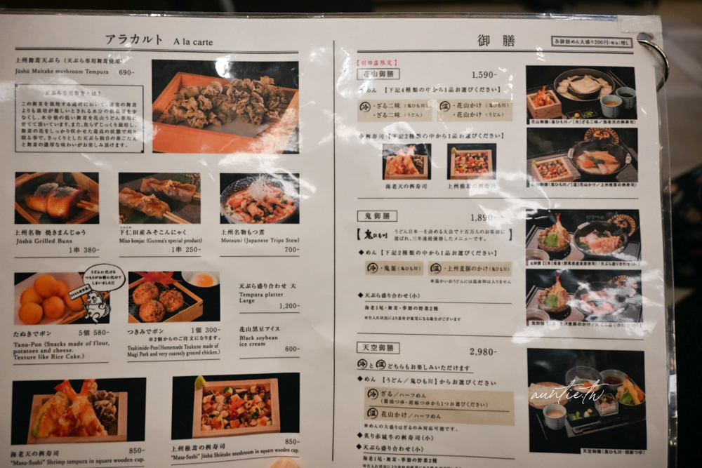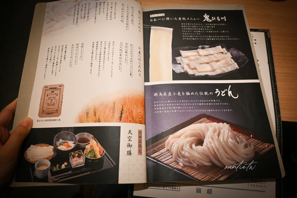 掃QR Code點餐,不過線上點餐當天有點失靈,所以直接跟工作人員點餐,「花山烏龍麵」比較有名的是寬版的「鬼ひも川」麵,冷烏龍麵「鬼釜」是曾經獲得連續三年烏龍麵冠軍的品項,除此還有羽田機場限定御膳。線上菜單