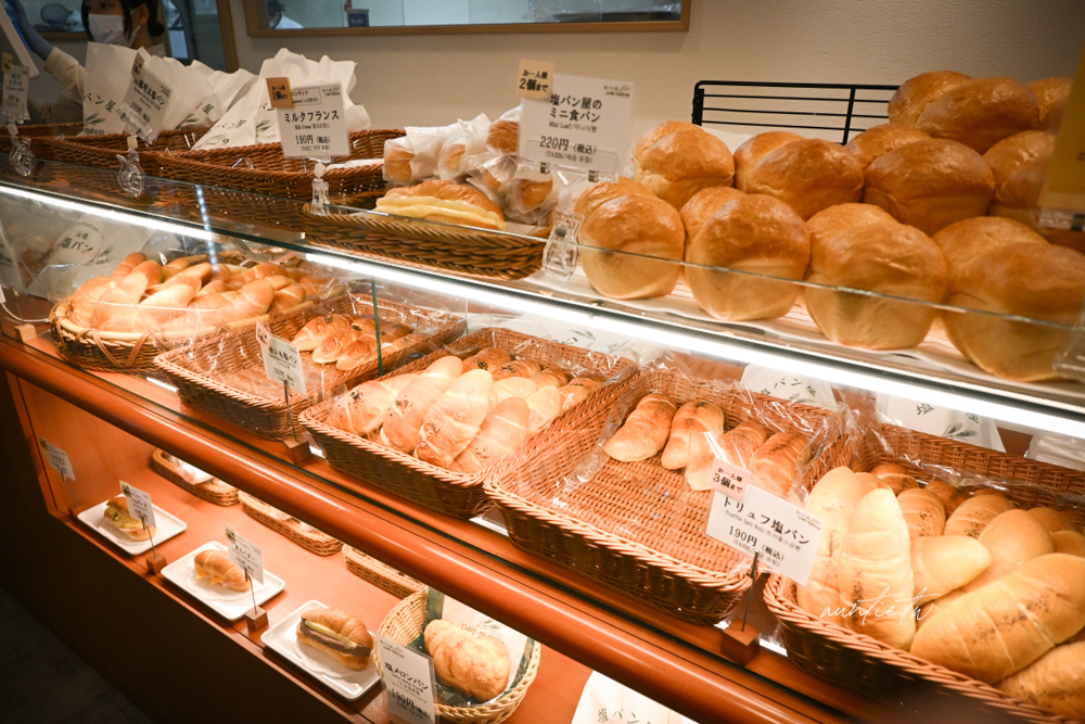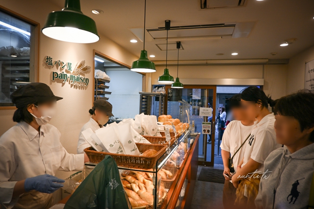 這次去東京旅遊,口袋名單中不少麵包店,去了其中一間評價好又平價的鹽可頌「塩麵包屋 pain・maison」,開在住宅區內,門口還有保全指揮排隊人潮實在有點驚人,小小的麵包店裡塞得滿滿的都是人,充滿烘焙的香氣,麵包品項很多有些還限購,人潮雖多但還好不用等太久!