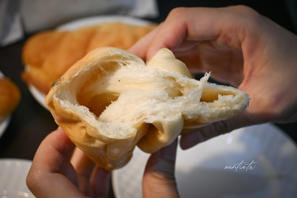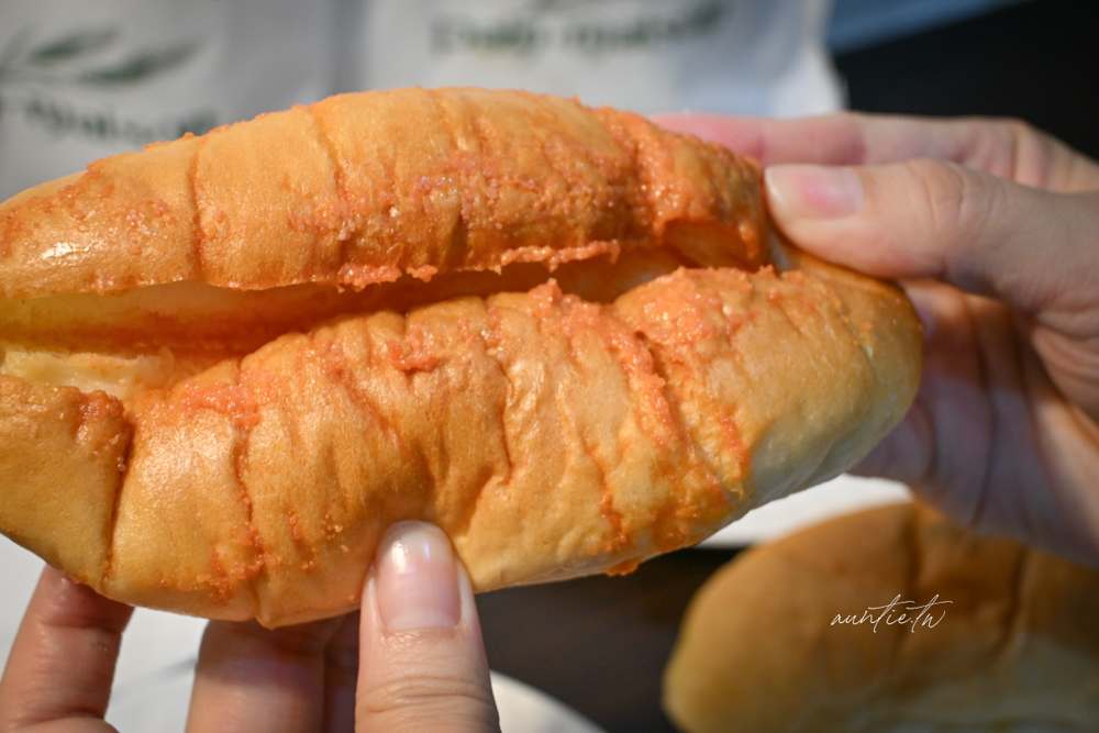 原味鹽可頌表面撒上了鹽岩,是店內最受歡迎的一款也最好吃,其他像是松露跟明太子口味個人覺得香氣都差了那麼一點,口感不錯,但要烤過,但是松露跟明太子能加的更多一點會更好,不然有點太空虛了啦!