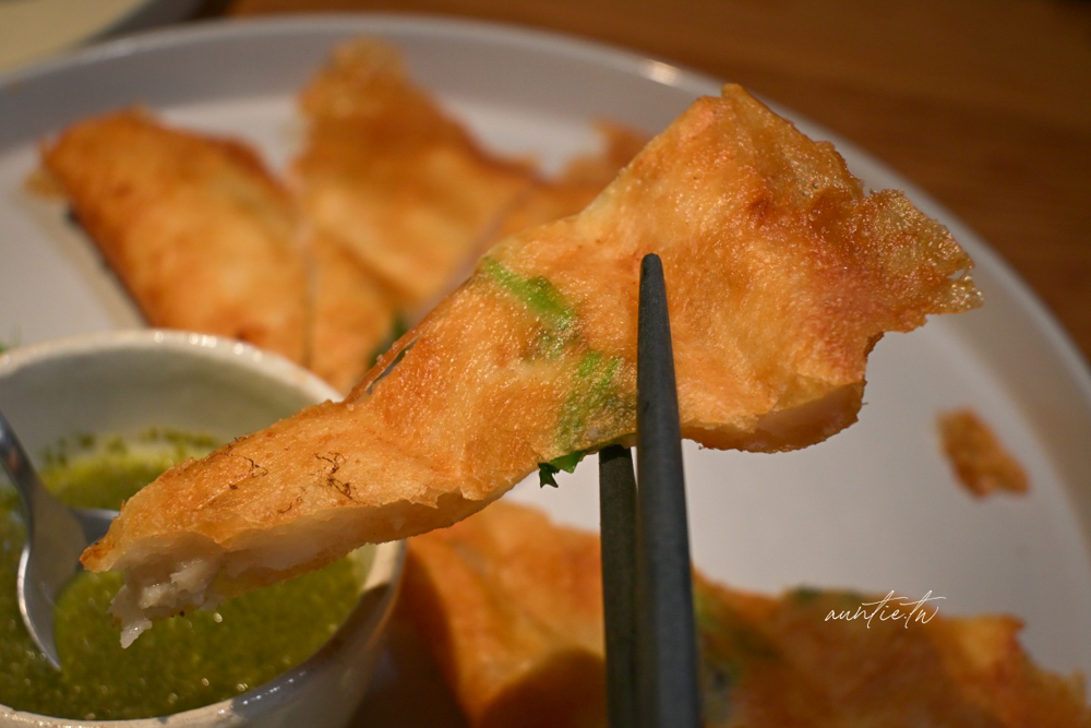 口感酥脆的花枝餅,有點像是月亮蝦餅的感覺,花枝漿的香氣很足,外酥內Q彈,醬料很清爽,有畫龍點睛的效果。